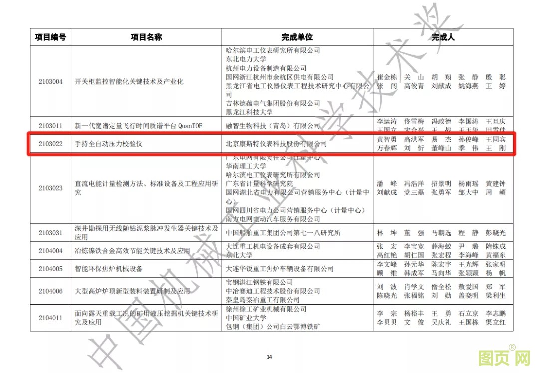 2021年度中國機械工業科技獎獲獎項目發布。北京康斯特儀表科技股份有限公司申報的《手持全自動壓力校驗儀》項目榮獲科技進步二等獎。
