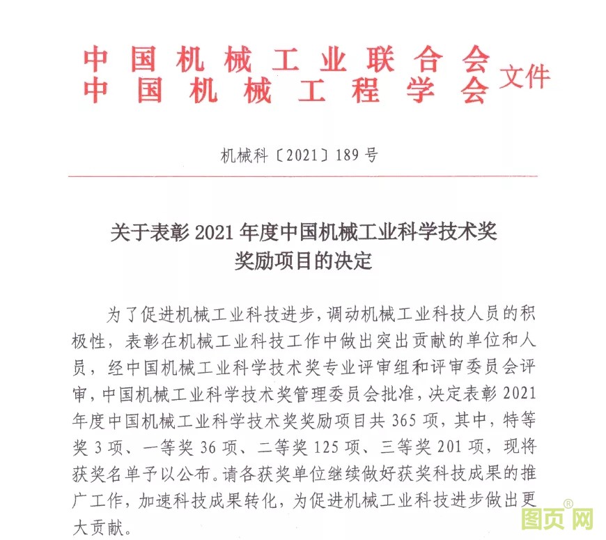 中國機械工業科學技術獎是根據《國家科學技術獎勵條例》和《社會力量設立科學技術獎管理辦法》的有關規定,由中國機械工業聯合會和中國機械工程學會共同設立并經國家科學技術部批準,在國家科技獎勵主管部門登記的面向全國機械行業的綜合性科技獎項。中國機械工業科學技術獎是全國性的機械工業綜合性科技獎項,也是機械工業申報國家科技進步獎的主要渠道。