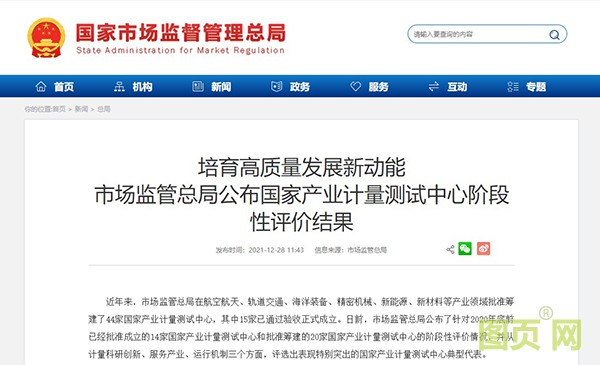 為貫徹實施《市場監管總局關于加強國家產業計量測試中心建設的指導意見》,全面了解各國家產業計量測試中心能力建設、科研攻關和服務產業等情況,12月20日,國家市場監督管理總局對2020年底前批準籌建或驗收的國家產業計量測試中心進行了階段性評價,并將其工作情況進行通報。我院國家平板顯示產業計量測試中心(蘇州)在已驗收的14家國家產業計量測試中心總體評價中綜合排名第2,并在專項評價中被評為計量測試服務優秀典型。