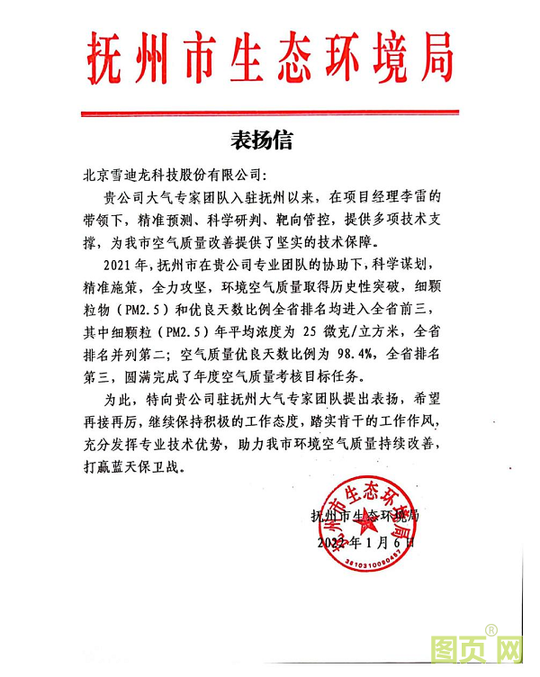 新年伊始,北京雪迪龍科技股份有限公司就收到了“撫州市大氣管理咨詢服務項目”傳來的好消息——一封用實力贏得客戶點贊的表揚信!在過去的2021年,雪迪龍管家服務團隊通過高質量的履約和專業的服務,出色完成了項目的各階段工作目標,為推動撫州市空氣質量持續改善、堅決打贏藍天保衛戰做出了積極貢獻。