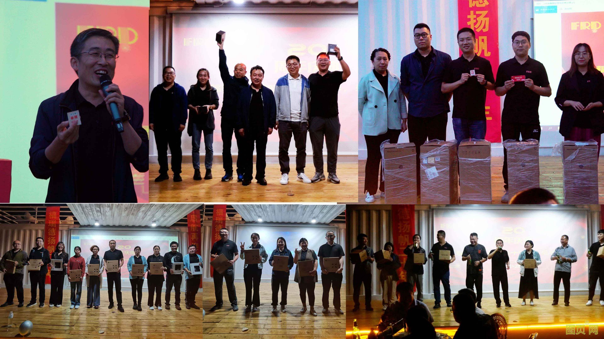 晚會當然也少不了獎項環節:空氣凈化器、智能手環、最新款手機、電子秤、養生壺等獎品琳瑯滿目。抽中的興高采烈,沒抽中的也由衷的替他們開心。