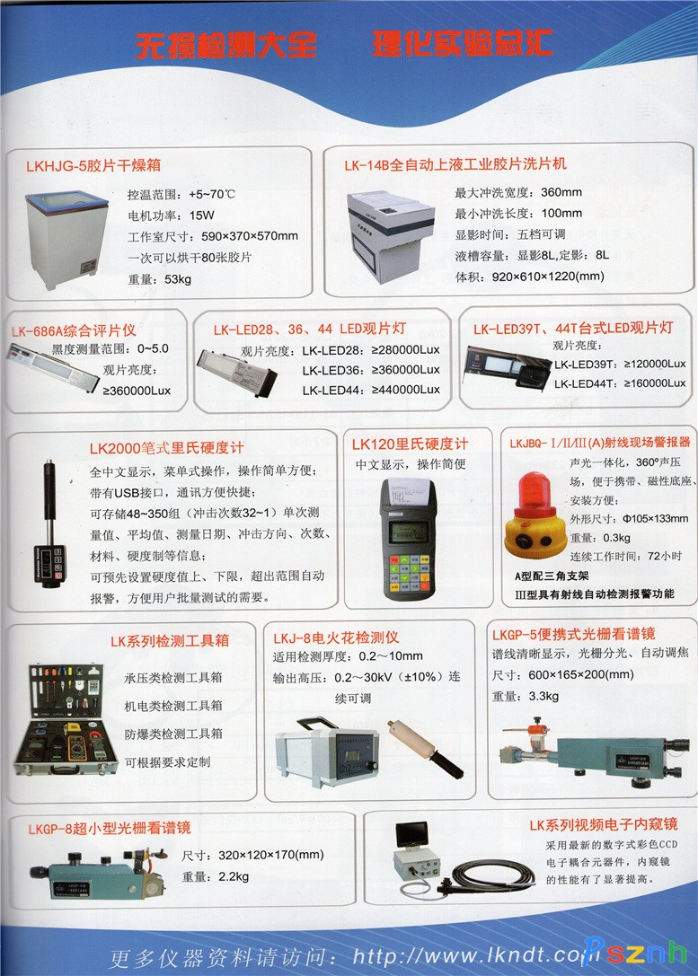 在生產(chǎn)上公司本著“以科技為先導,以質(zhì)量求生存”的宗旨,吸收國內(nèi)外先進技術(shù),推出了:LK300、UTM系列超聲波測厚儀,CDX系列便攜式磁粉探傷儀,X射線探傷機、LK系列超聲波探傷儀、全自動洗片機、LK系列便攜式硬度計、LK系列冷光源觀片燈、LKGP系列光譜儀、JG系列電火花檢測儀、LK系列檢測工具箱、以及觀片燈,各種超聲波探頭等先進的無損檢測產(chǎn)品。本公司測厚儀主機壹年保換,終身保修,在質(zhì)量上擁有了可靠的保證,現(xiàn)公司產(chǎn)品已遍及全國各地,深受用戶好評。為答謝用戶的支持,公司還一開展了免費維修各種測厚儀活動,免維修費,免換元器件費,免反還的郵寄費,做到了真正的免費。