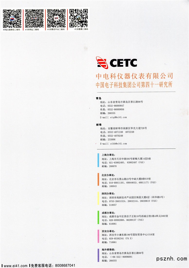 中電科儀器儀表有限公司于2015年5月成立,本部位于青島。公司以中國電科第四十、四十一研究所為核心,擁有一支從事電子測量儀器、自動測試系統(tǒng)、微波 毫米波部件、元器件以及各類電子應用產(chǎn)品研究、開發(fā)、設計的專業(yè)技術(shù)隊伍,主要從事微波/毫米波、光電通信、數(shù)字通信、基礎(chǔ)通用類測量儀器 以及自動測試系統(tǒng)、微波毫米波部件等產(chǎn)品的研制、開發(fā)和批量生產(chǎn),并為軍、民用電子元器件、整機和系統(tǒng)的研制、生產(chǎn)提供檢測手段。
