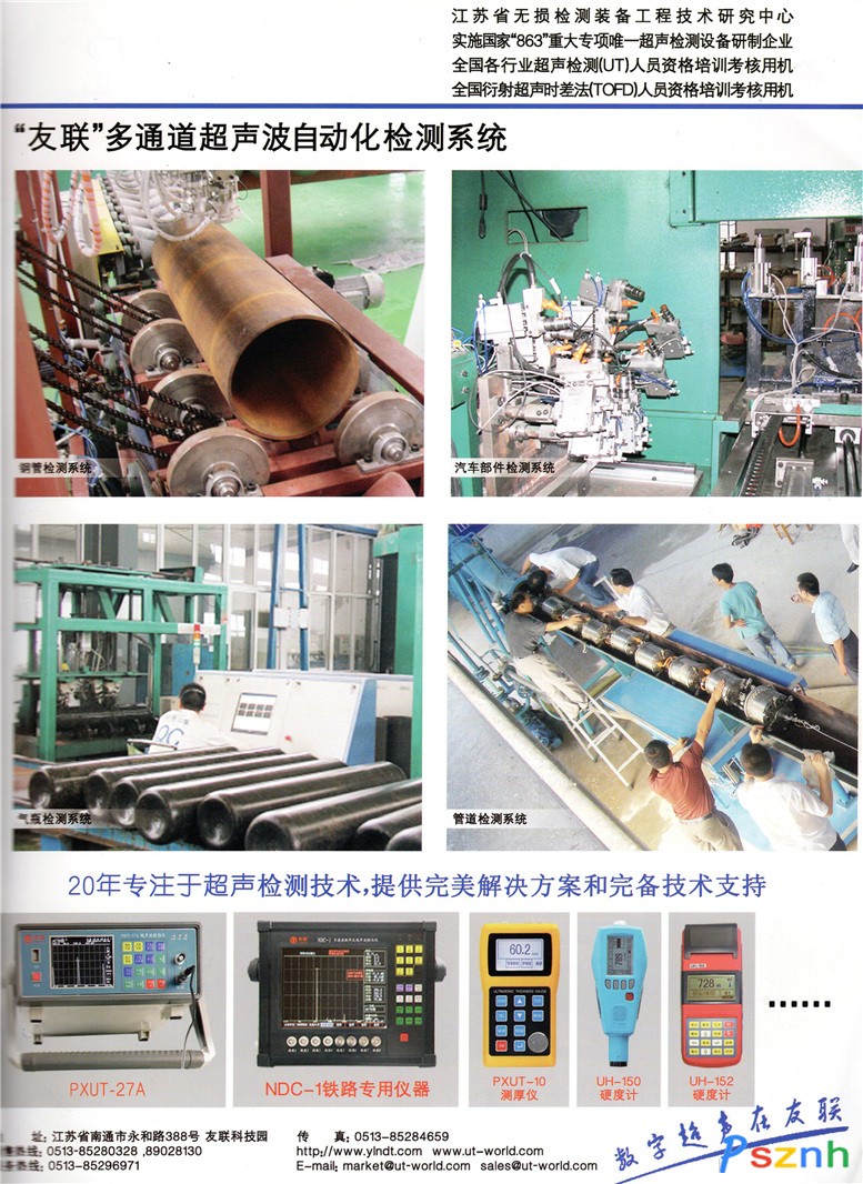 南通友聯數碼技術開發有限公司為國家高新技術企業,專業從事數字超聲波探傷儀器和探傷系統的研制、生產和銷售,為江蘇省級無損檢測裝備研發中心,系國內工業超聲檢測行業的龍頭企業。