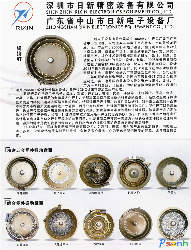 日新產(chǎn)品廣泛應(yīng)用于電子、五金、塑膠、鐘表業(yè)、電池、食品、連接器、醫(yī)療器械、醫(yī)藥、食品、玩具、文具、日常用品的制造等各個(gè)行業(yè),是解決工業(yè)自動(dòng)化設(shè)備供料的必須設(shè)備。日新振動(dòng)盤確保振動(dòng)盤面軌道的精度,達(dá)到有數(shù)據(jù)可依的目的。特別適用于尺寸細(xì)小的零件自動(dòng)送料,對(duì)于正反面或同一面的不同方向不存在太大的結(jié)構(gòu)或尺寸差異,而是只有如顏色、紋理等可識(shí)別特征的工件,我們還可以采用光纖、色標(biāo)等傳感器或采用影像分析的方法進(jìn)行識(shí)別,解決各種高難度的零件送料問題。除滿足產(chǎn)品的定向排序外還可用于分選、檢測(cè)、計(jì)數(shù)包裝等技術(shù)應(yīng)用是一種現(xiàn)代化高科技產(chǎn)業(yè),隨作市場(chǎng)需求不斷增加,2015年深圳成立日新精密設(shè)備有限公司,2016年上海成立分公司。量如何把工件有序地穩(wěn)定可靠地排列出來是自動(dòng)化行業(yè)要解決的首要問題,也是日新工程師們一直致力于解決各種工件的自動(dòng)送料難題,客戶的需求是我們發(fā)展的源動(dòng)力,隨作市場(chǎng)需求不斷增加,2015年深圳成立日新精密設(shè)備有限公司,2016年上海成立分公司。選擇日新設(shè)備我們將為客戶提供優(yōu)質(zhì)的產(chǎn)品與完善的售后服務(wù)。
