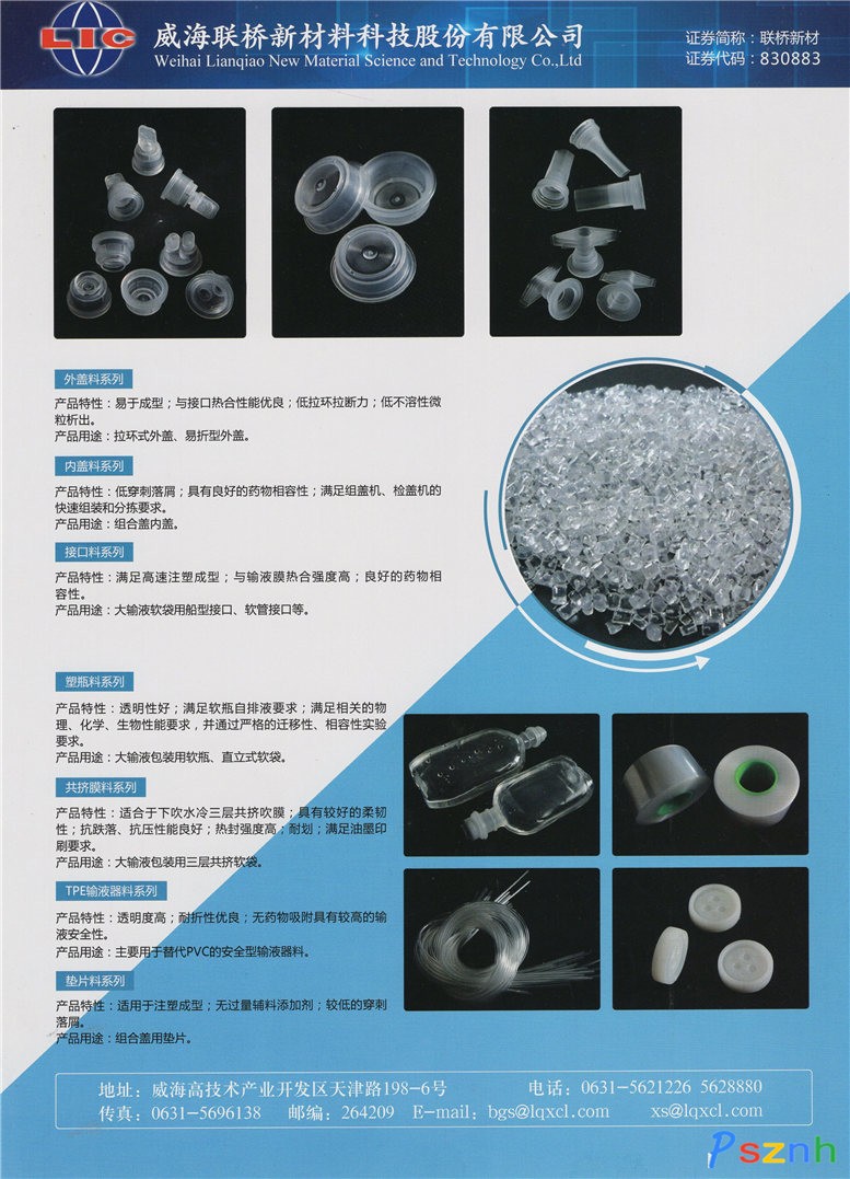 威海聯橋新材料科技股份有限公司 醫用樹脂 外蓋料 接口料 軟瓶料