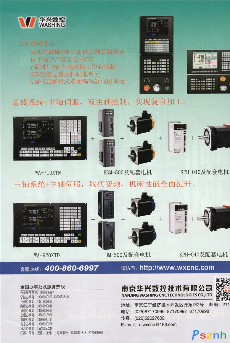 南京華興數控技術有限公司http://www.wxcnc.com/華興數控是國內主流數控系統供應商之一,提供從數控系統,交流伺服,主軸伺服,交流伺服電機,主軸伺服電機到隔離功率變壓器的機床全套電控產品,全部產品均自主設計與生產,具備極佳的性價比和可靠性。 我公司是國內僅有的兩家數控專業廠家之一:年產系統過萬套,具備從數控單元,伺服單元,主軸單元及配套電機全系列產品自主設計生產能力。 經過數年發展,公司積聚了大批各層次的研發隊伍,具備豐富的產品開發應用經驗,并擁有多項專利及前沿技術,已在機床,紡織,印染,食品,醫療等設備的運動控制上產生了廣泛影響,2010年以來年銷售數控系統3萬~5萬套。 公司擁有SMT貼片生產線,進口電路板全自動光學檢測儀AOI,電機高速沖壓線,電機級進模,全自動浸漆烘干線等完備的生產及檢測設備,年產電路板約20多萬塊,具備年產10萬臺伺服及主軸電機的生產能力。公司二期廠房正在籌建,全部廠房面積達到2.5萬平米。 公司即將推出中大功率永磁同步主軸伺服單元,多軸多通道總線式數控系統,100萬線高分辨永磁同步電機及總線型伺服驅動器。我公司研發的POWERlink工業以太網總線全硬件主從站芯片,遙遙領先與其他同類總線,公司為多軸多通道系統專門刻制的CPU具備奔騰4以上的速度和效率。 “優質、快速、便捷”是公司對廣大用戶的承諾。公司在全國各地建有十多個服務辦事處,近70名公司員工常駐全國各地,就近為廣大用戶提供最快捷的服務。