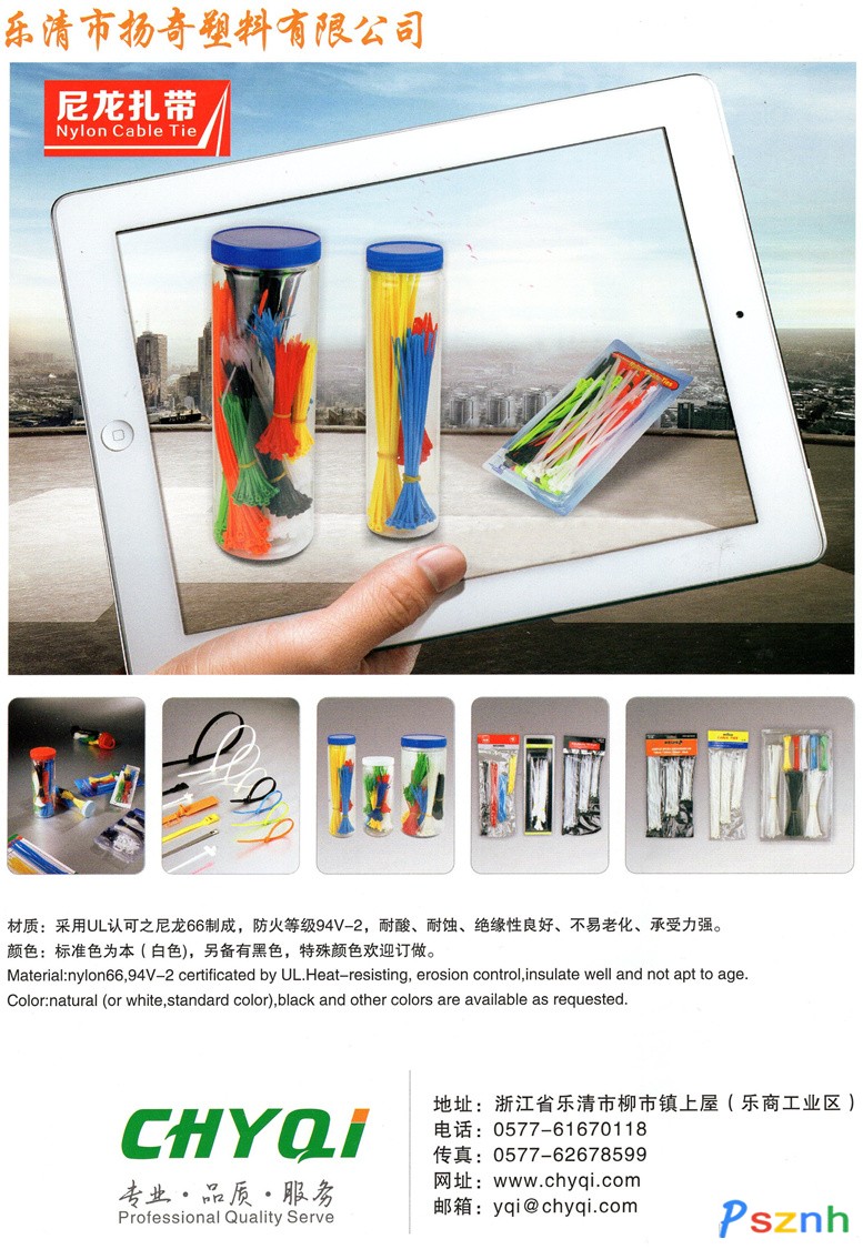本公司專業(yè)生産和銷售尼龍紮帶(cable ties)、鋼釘線卡、接線端子、定位片、壓線帽、纏繞管、膨脹管、異型管等電線電纜配件,産品廣泛應用于電子、機械、汽車、摩托、自行車等行業(yè)的捆綁之用,使用方便,價格合理。成爲衆(zhòng)多企業(yè)、商家采購同類産品的首選,更是大量進入歐美等發(fā)達國家的超市。真誠希望我們能夠攜手合作,共同開拓更廣闊的國際市場。