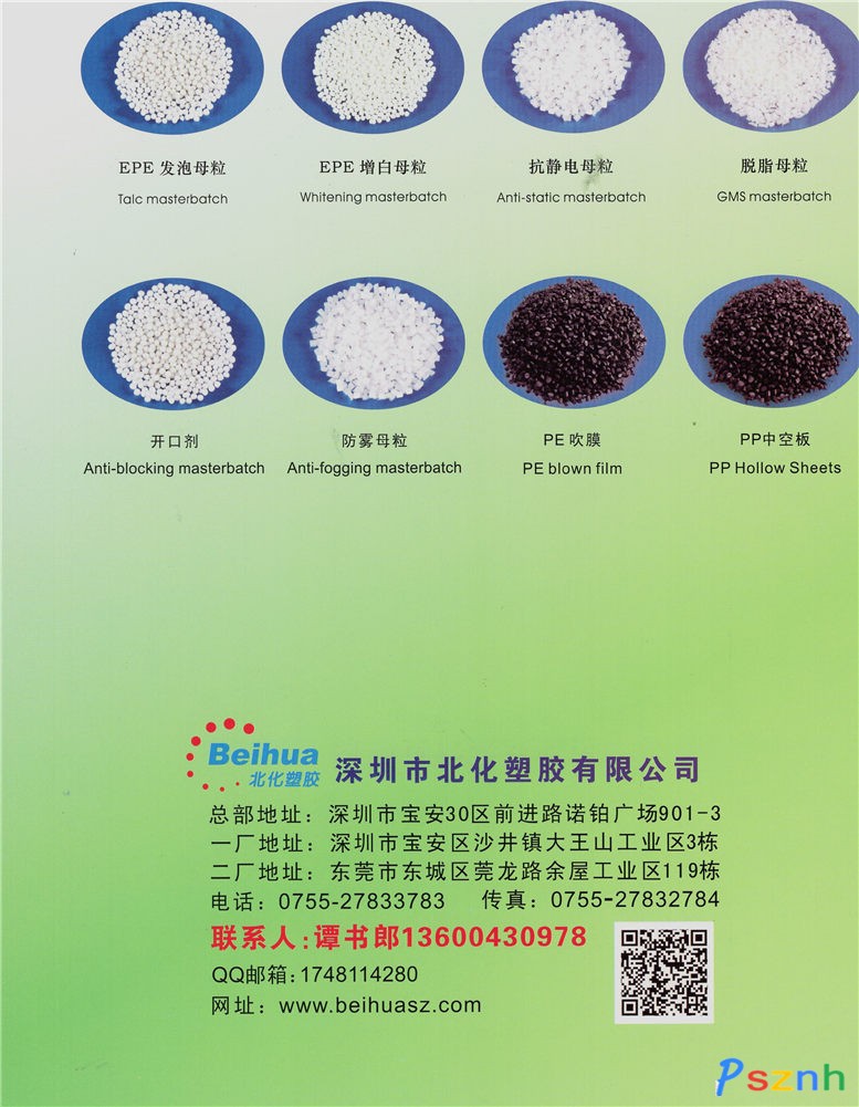 深圳市北化塑膠有限公司 母粒_色母粒_導電料_EPE(珍珠棉)_EPS(廣告板_餐盒)_氣泡膜(氣珠墊)_膠袋_吹瓶_EPE發泡母粒_PS增白母粒_EPE增白母粒_開口母粒_抗靜電母粒_環保母粒_增