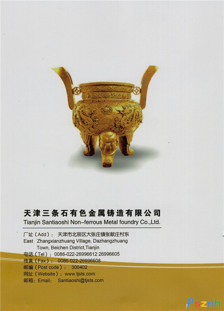 天津市三條石有色金屬鑄造有限公司是中國民族工業的搖籃,鑄造業的發祥地,以傳承三條石金屬鑄造業為基礎發展起來的天津市三條石有色金屬鑄造有限公司,是一家擁有四十六年生產歷史的專業鑄造廠家。他承襲了三條石傳統鑄造業的歷史,融合了現代工業的管理機制,特別是改革開放以來,通過不斷吸收先進的經營理念和技術,不斷研發、創新,并在鑄造模式上進行革命,一步步攀登最先進的鑄造工業高峰。
