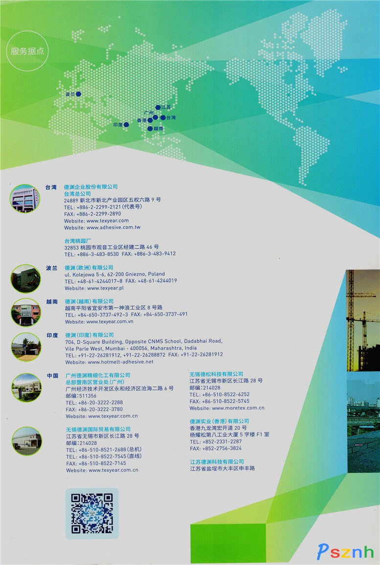 總公司德淵企業(yè)集團成立于1976年,位于臺灣新北市,致力于膠粘行業(yè)近四十年,是熱熔膠棒全球銷量領先者,產品橫跨膠粘業(yè)、綠能材料、醫(yī)療材料等行業(yè),在中國大陸、臺灣、越南均設有研發(fā)中心、生產工廠和辦公室。近年來,德淵集團更積極地將觸角延伸至太陽能電池模塊材料及醫(yī)療設備之高壓蒸汽減菌鍋等領域,使德淵在這些領域成為全球知名的制造商,總公司股票代碼(臺北):4720。