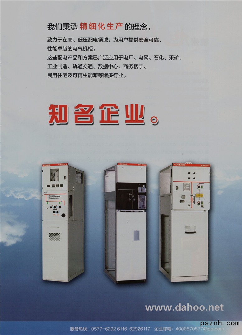 浙江大禾電氣成套設(shè)備有限公司 創(chuàng)建于2001年3月,專業(yè)生產(chǎn)中壓開關(guān)機(jī)柜(DHSF6-12/CFV、GTXGN15-12、SM6(SC6)-12/24、XGN15、XGN□-12、XGN17、XGN66-12、KYN28A-12/24、KYN61-40.5、DFW5-12/630R、JP)的股份制有限責(zé)任公司。公司連續(xù)多年被金融系統(tǒng)評(píng)為“AAA”資信企業(yè),明星企業(yè),成長型中小企業(yè),是樂清市人民政府“重合同、守信用”單位,浙江省工商企業(yè)信用“A”級(jí)“守合同、重信用”單位。公司位于樂清市北白象工業(yè)區(qū),緊鄰104國道、G15高速和溫州機(jī)場,交通便利。 公司擁有一批電氣成套設(shè)備機(jī)柜專業(yè)高級(jí)技術(shù)管理人才,技術(shù)力量雄厚,公司采用了現(xiàn)代化經(jīng)營管理模式,微機(jī)網(wǎng)絡(luò)輔助設(shè)計(jì)。