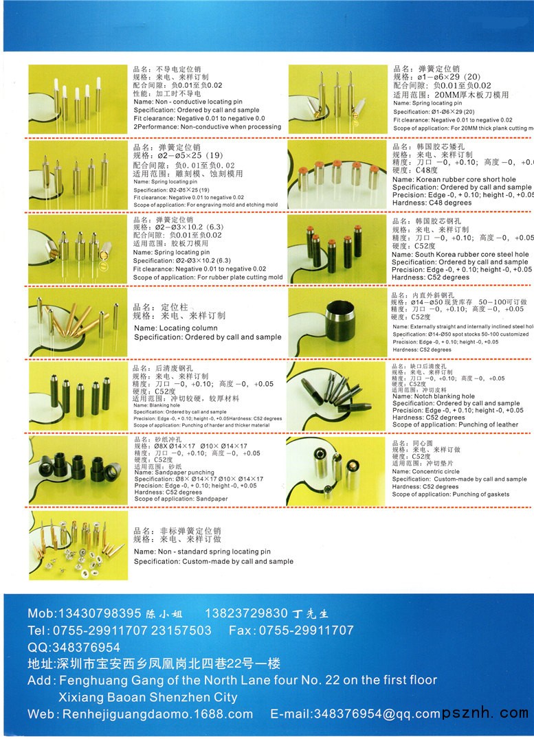 深圳市人和沖孔制品有限公司系高精度激光刀模配件-鋼孔 的專業廠家,于2006年創建于深圳,公司技術力量雄厚,擁有30多名優秀的技術團隊及員工隊伍。不斷采用國際最前端設備,如:日本津上、法蘭克數控車床、臺灣數控車床、高端磨刀機、高速電腦鑼、高精密磨床、銑床、自動車床、自動攻牙機等等。高精密檢測儀器,如:投影儀、高倍顯微鏡等,自開廠以來專業為廣大客戶攻克各種材質高難度沖切問題。本公司銷售團隊宗旨:質量第一、交期第一、服務第一,做中國最誠信的鋼孔供應商,以滿足廣大客戶的不同需求