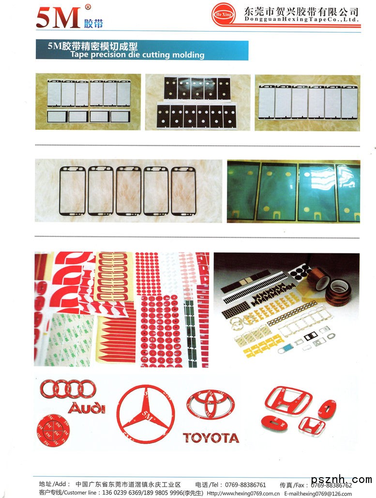 本公司產品適用于電子產品、汽車飾品、汽車隔音制品、空調隔音、防塵制品、儀表、餐具、玩具、音箱、家私、手袋、燈飾、禮品、工藝品、化妝品、塑膠五金、電腦、鼠標墊、手機、數碼相機、影印機、導航、液晶顯示器、復印機、電話機、傳真機、DVD、MP3、MP4、運動器材、銘牌、標牌、包裝材料、印刷商標、廣告、裝飾、并代客上膠、衡行、模切、裁切、分條等加工。泡棉類:高發泡、回力膠、RB料、SBR/EVA及PU海綿、防火棉等,可成型、成卷有膠制品;膠帶類:雙面膠(黃/白/黑)、電子架橋PE膠帶、汽車膠帶、鋁箔膠帶、銅箔膠帶、布膠帶、PET膠帶、導電雙面膠、絕緣膠帶、并代理美國3M、日本SEKIUI(積水)、韓國Yoshino(裕屋)德國TESA(德莎)等各種進口特殊膠帶;