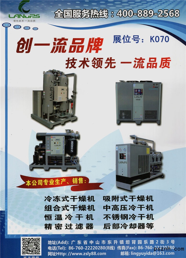 中山市凌宇機械有限公司 壓縮空干燥機 冷凍式干燥機 吸附式干燥機 精密過濾器 東莞空壓機展