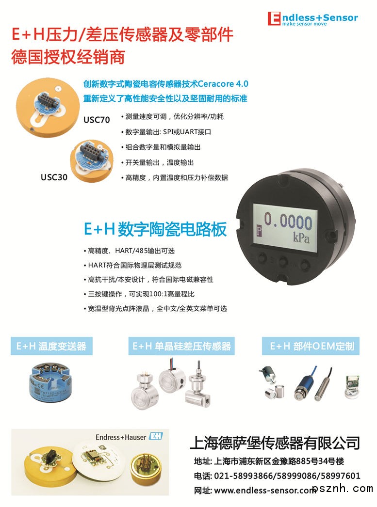 上海德薩堡傳感器有限公司位于上海浦東新區金橋出口加工區,是一家中德合作的高新技術企業。與擁有儀器儀表世界領先水平的德國Endress+Hauser公司建立戰略性OEM合作伙伴。提供Endress+Hauser公司制造最新的定制壓力傳感器和部件,滿足用戶的實際應用和產品高品質解決方案。使Endress+Hauser公司OEM產品能夠為客戶帶來利益。
