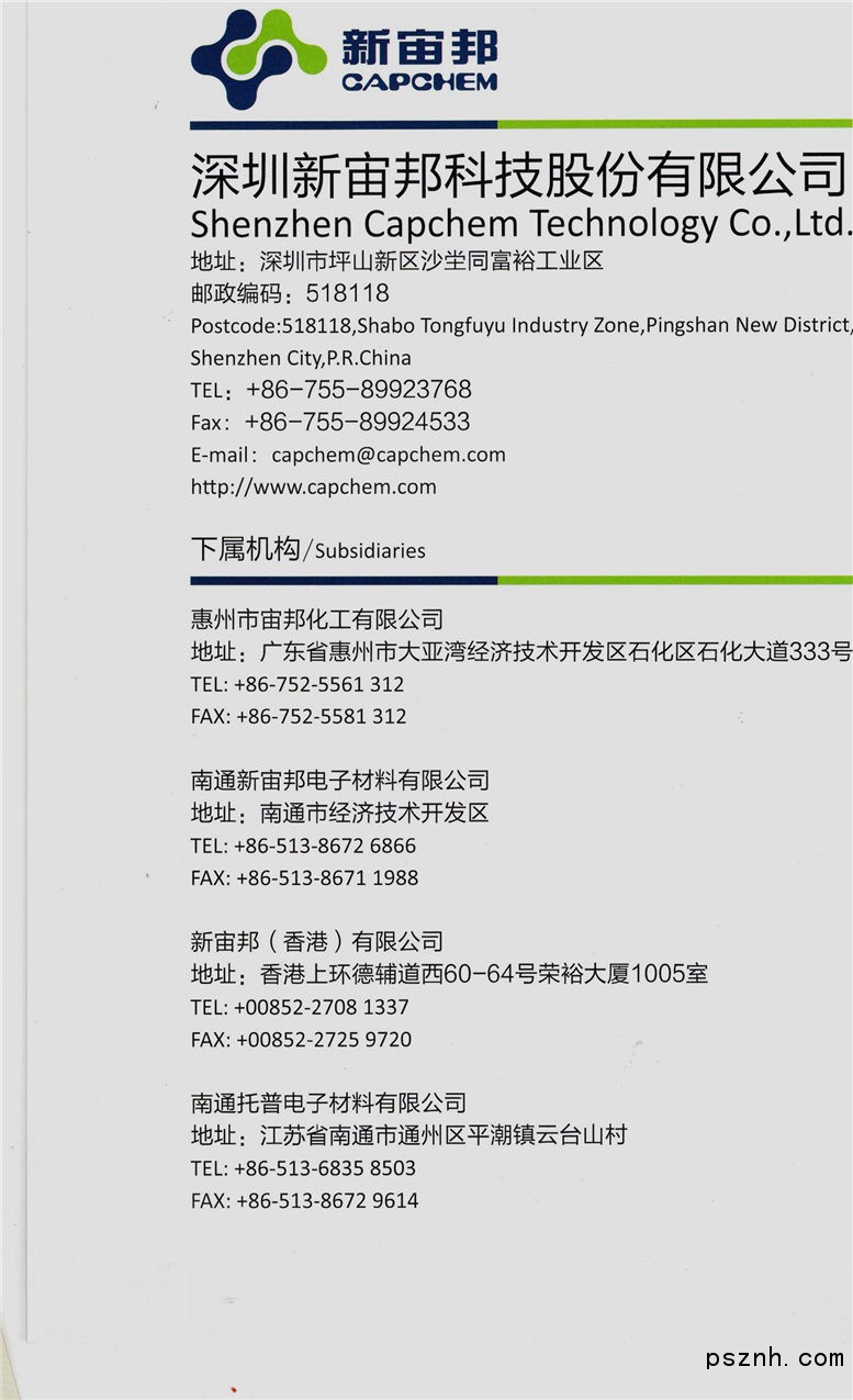 新宙邦成立于2002年,源于1996年創立的深圳市宙邦化工有限公司,2008年整體變更為深圳新宙邦科技股份有限公司。2010年1月8日于深圳證券交易所成功上市(股票代碼:300037)。目前擁有四家全資子公司和三家控股子公司。