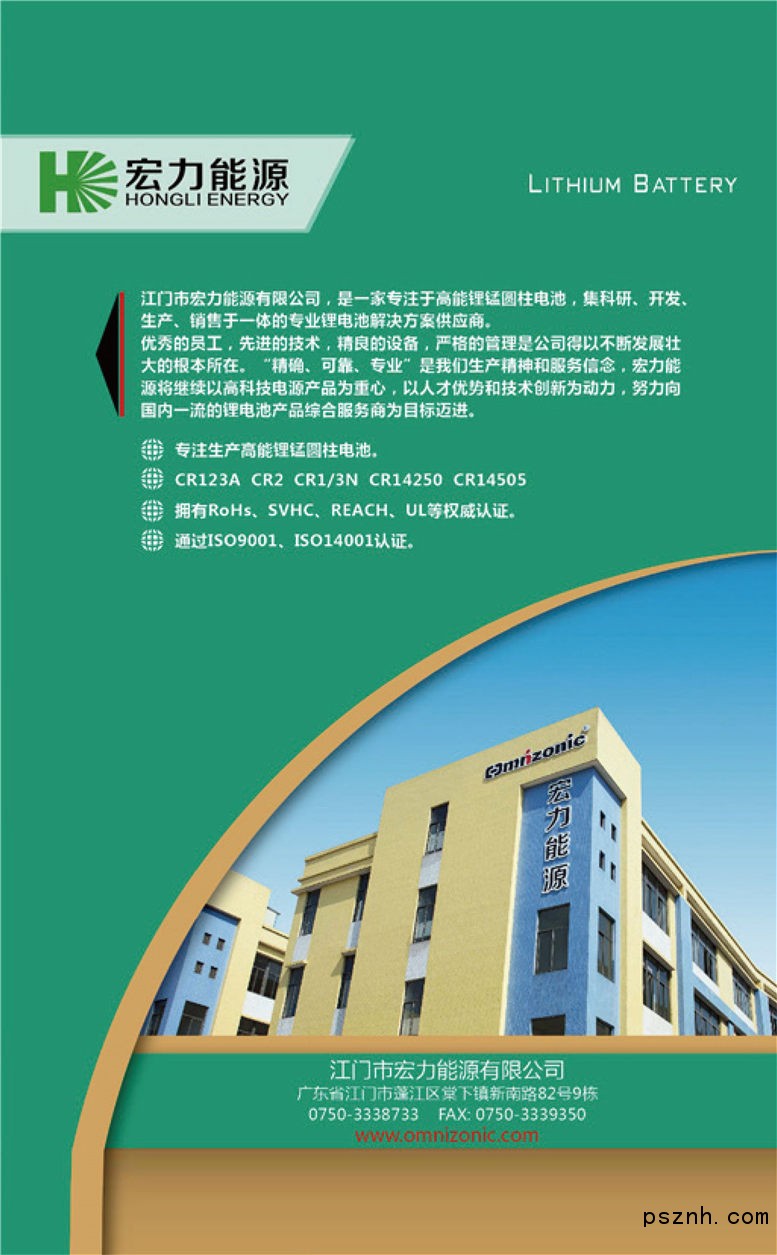 江門市宏力能源有限公司提供并生產(chǎn)3V鋰錳圓柱形電池,我們?yōu)槿蚩蛻艄?yīng)我們的注冊商標(biāo)“Omnizonic”產(chǎn)品以及營運(yùn)OEM代工業(yè)務(wù)。
