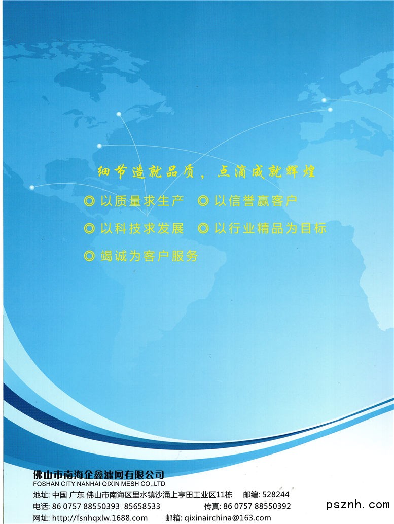 佛山市南海企鑫濾網(wǎng)有限公司是產(chǎn)品專業(yè)生產(chǎn)加工的公司,擁有完整、科學(xué)的質(zhì)量管理體系,機器設(shè)備先進齊全,實力和產(chǎn)品質(zhì)量獲得業(yè)界的認可。