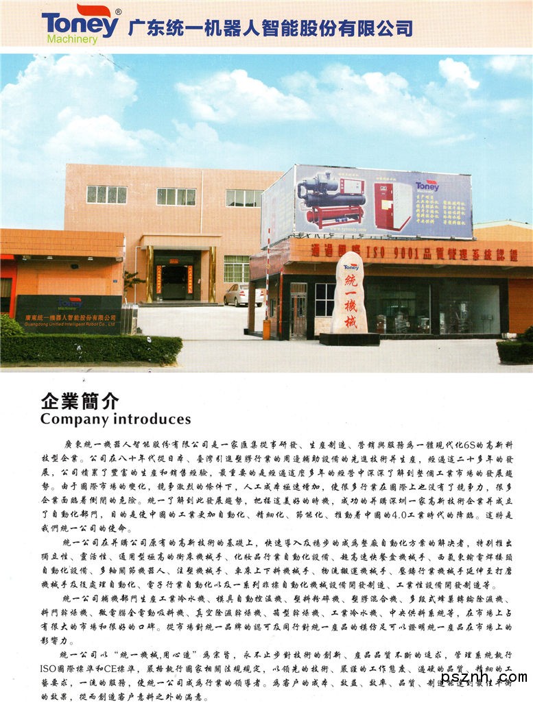 統一智能具有20多年生產工業冷水機、模具自動控溫機、塑料粉碎機、塑膠混合機、多段式蜂巢除濕機、料斗干燥機、微電腦全自動填料機、真空除濕機、箱型干燥機、中央供料系統、中央供水系統等;在市場上有上萬家忠實的客戶,占有很大的市場和很好的口碑。從市場對統一品牌的認可及同行對統一產品的模仿足可以證明統一產品在市場上的影響力。
