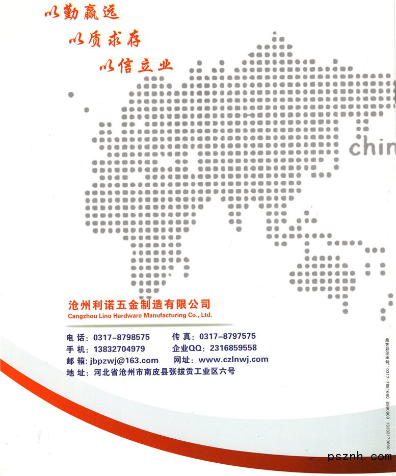 滄州利諾五金制造有限公司成立于2012年(原南皮縣長松五金廠)。公司新址地理位置優(yōu)越,交通便利。坐落于南皮五金產業(yè)區(qū)中心地帶。近年來,公司不斷加強、完善硬件設施。在提高生產效率、完善品質的同時,更為客戶提供了個性化、全方位、高水平的服務。