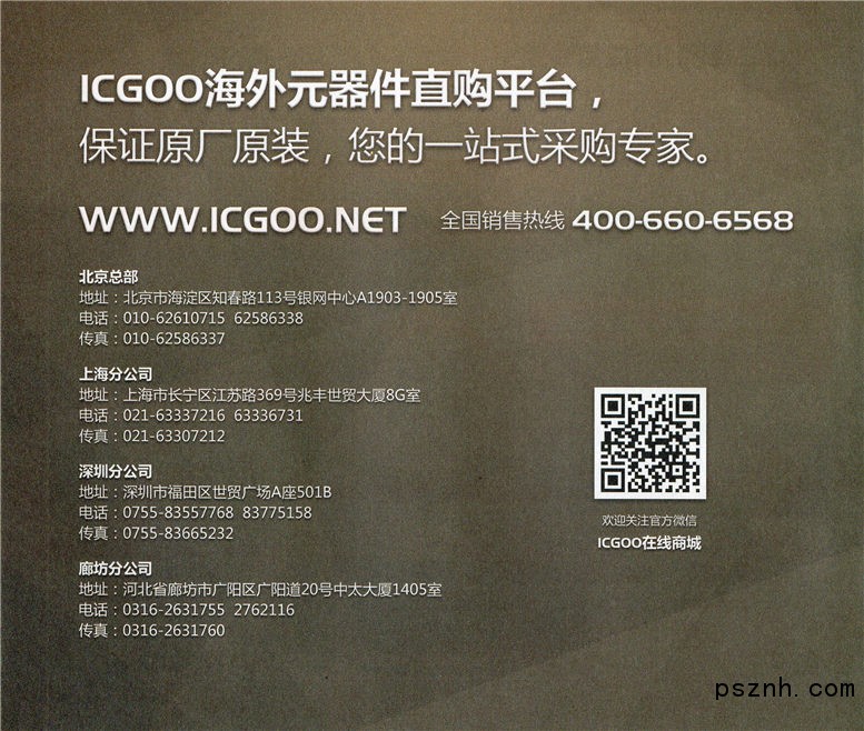 •   ICGOO的客戶群體覆蓋了所有可以應(yīng)用電子元器件產(chǎn)品的用戶。您可以是大、中、小型的國內(nèi)貿(mào)易商,也可以是國個各個領(lǐng)域的生產(chǎn)型企業(yè),還可以是國內(nèi)各類科研機(jī)構(gòu)及高校實(shí)驗(yàn)室。當(dāng)然,如果你是熱衷于電子產(chǎn)品DIY的愛好者,同樣也能夠與ICGOO這一開放的平臺合作。您只需登陸我們的網(wǎng)站www.icgoo.net或者直接與我們的客服人員聯(lián)系,提出您的要求,我們都會在第一時間為您尋找適合您的產(chǎn)品。