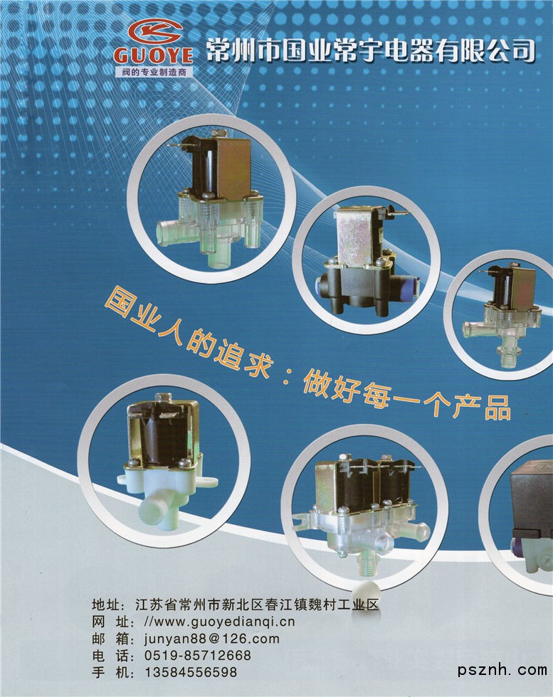 常州市國業(yè)常宇電器有限公司是專業(yè)從事凈水機(jī)用各類電磁閥及制冷系列電磁閥研發(fā)、制造企業(yè),所研發(fā)生產(chǎn)的系列進(jìn)水電磁閥、放水電磁閥、脈沖電磁閥、組合沖洗電磁閥及制冷用電磁閥,廣泛應(yīng)用于高檔飲水機(jī)、直飲機(jī)、凈水器、制冰機(jī)、冰淇淋機(jī)、雪融機(jī)及炒冰機(jī)等產(chǎn)品上。