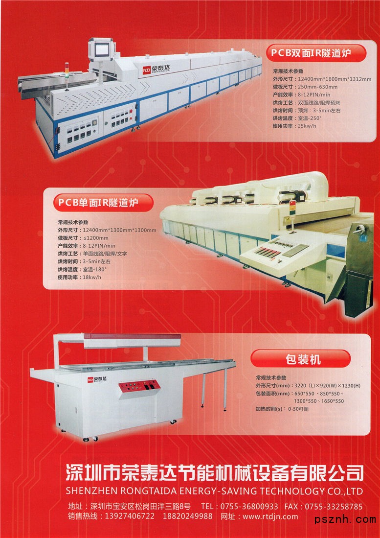 深圳市榮泰達(dá)節(jié)能機(jī)械設(shè)備有限公司,是國內(nèi)領(lǐng)先的LEDPCB等自動涂布烘干印刷設(shè)備廠家,致力于隧道爐,真空包裝機(jī),涂布機(jī),工業(yè)烤箱,手動、半自動絲印機(jī)、UV光固機(jī),拉網(wǎng)機(jī),曬版機(jī)等印刷設(shè)備的研發(fā)與推廣事業(yè),公司主要產(chǎn)品包括:高效節(jié)能型隧道爐,線路板雙面隧道爐,節(jié)能型真空包裝機(jī),UV紫外線光固機(jī),半自動絲印機(jī),全自動絲印機(jī),涂布機(jī)。