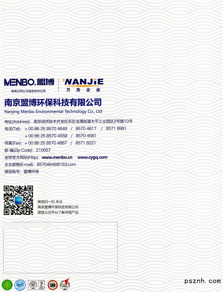 南京盟博作為中國臭氧協會、環境保護協會會員單位擁有多年臭氧應用化設備、環保設備、電熱設備等的研發、設計、制造與服務的歷史,“ ”牌環保成套設備嚴格按照ISO9001-2000質量管理體系標準研發、設計與制造世界一流的成套環保設備,擁有多年大型系統的良好運行業績。