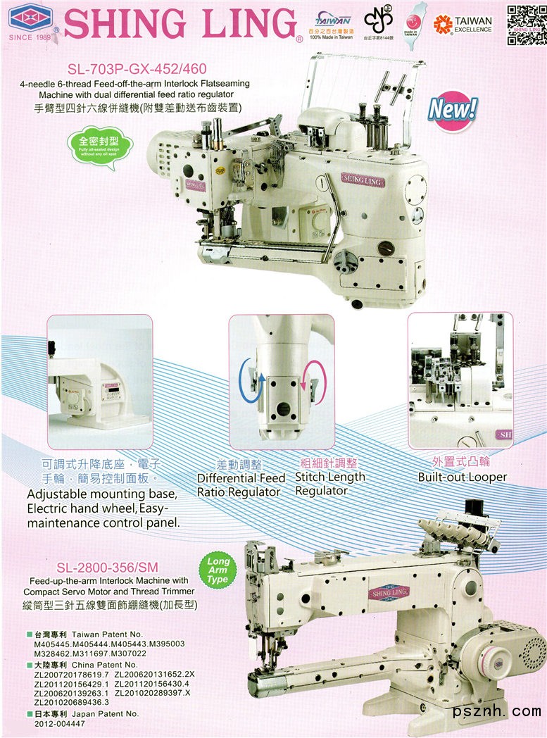 本公司系列產品近年來榮獲各類大獎並申請各國專利,例如:應用於各類萊卡布、針織布、潛水衣之併縫機,新型的自動摺下擺縫紉機(附上送裝置),都是生產高品質、高產能的成衣利器,行銷世界百餘國,以”精進技術、追求卓越、嚴格品管、客戶滿意”為目標,期能不斷創新進步及自我突破,再此誠摯殷盼海內外各界對星菱縫紉機公司的惠予支持及不吝指導。