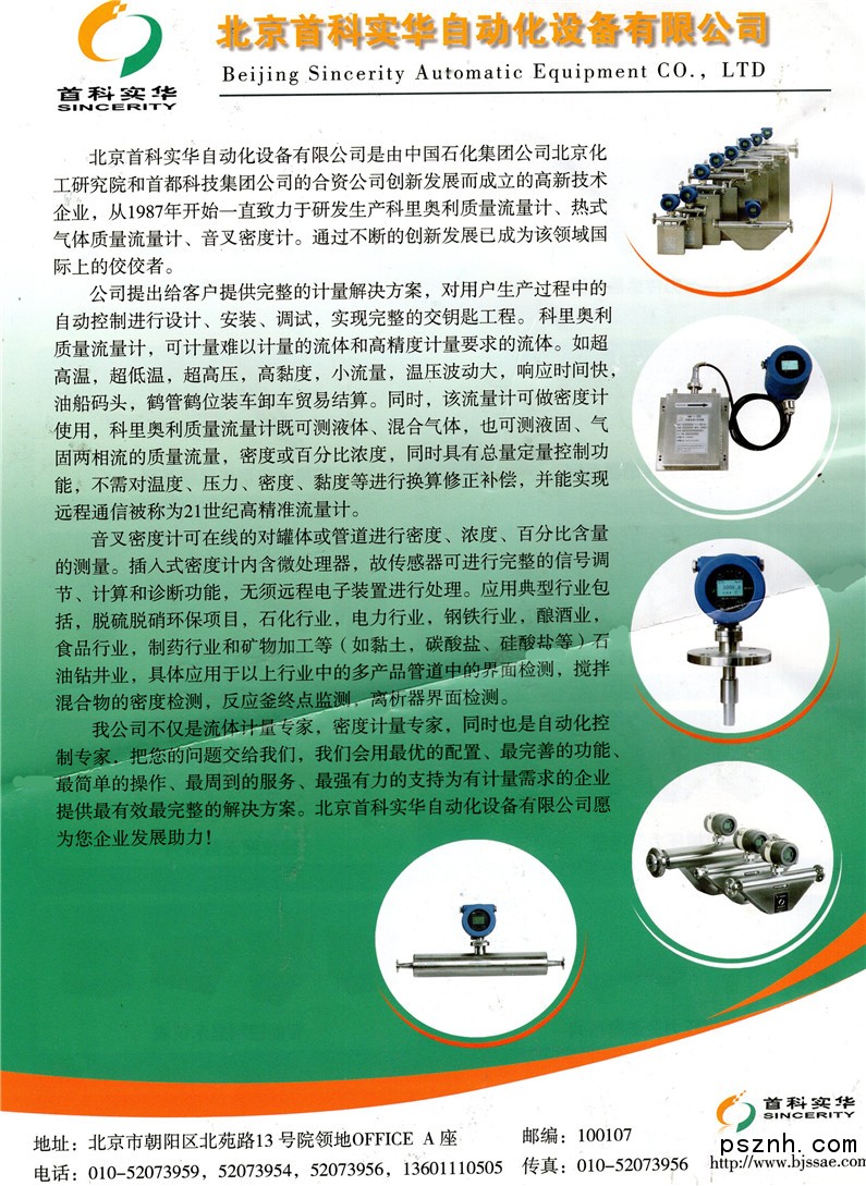 高精度流量計_ 高溫流量計_微小流量計_多國儀表展-北京首科實華自動化設備有限公司