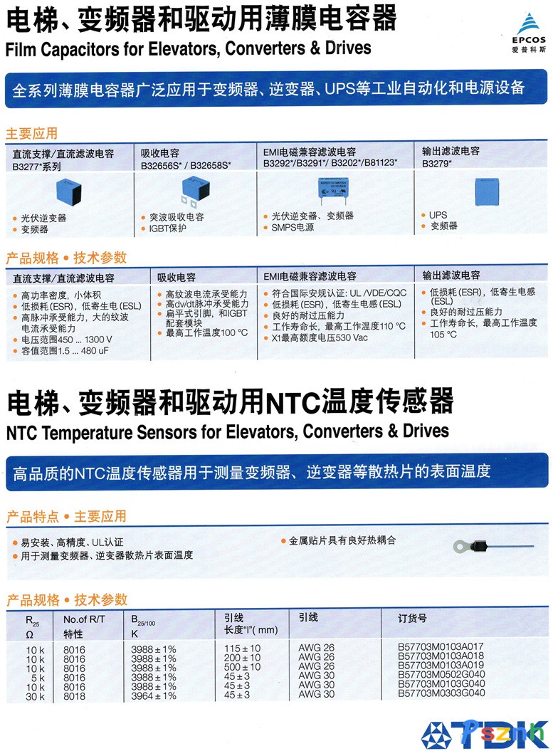 愛普科斯 (EPCOS)提供品類齊全的元件、模塊及系統,其中包括電容器、鐵氧體和電感器、高頻元件和模塊、壓電和保護設備以及傳感器等。