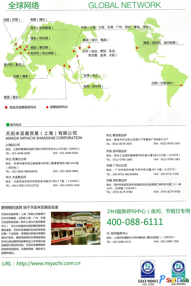 天田米亞基貿易(上海)有限公司成立于1996年隸屬于天田米亞基集團(日本)。在中國大陸設有上海本部,同時在廣州、天津、大連、深圳、蘇州、青島等地都設有分支機構。在中國上海設有SC技術維修中心。公司在中國主要進行精密電阻焊接設備以及激光加工、焊接設備的銷售和技術服務,并一直在為世界各地的廠商提供優質的產品與良好的技術支持。