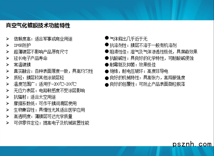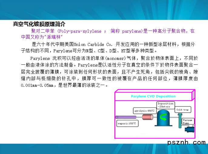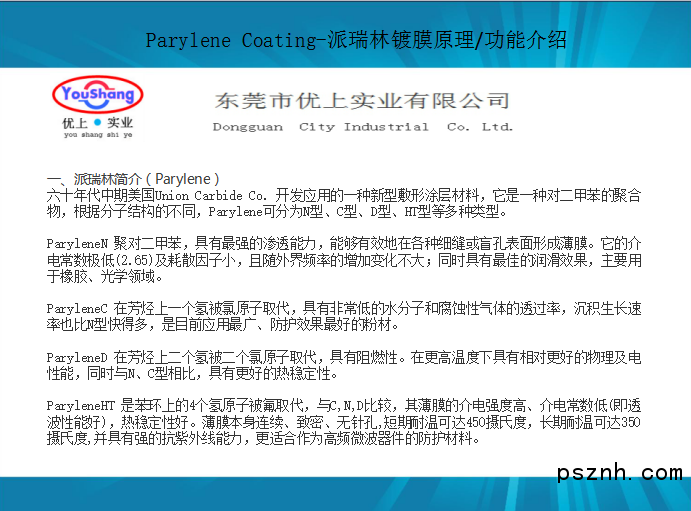 東莞市優上實業有限公司專業納米真空鍍膜業務及設備的研發和銷售。 電子電器的PCBA零部件,LED及各種線路板進行防水(IP68),防潮,防腐蝕,防鹽霧,防紫外線, 高低溫, 絕緣等表面涂裝處理工藝。 Parylene涂裝技術優于固體材料本身的優越性能, 達到提高產品質量、延長產品壽命、 節約能源和獲得顯著技術經濟效益的作用。