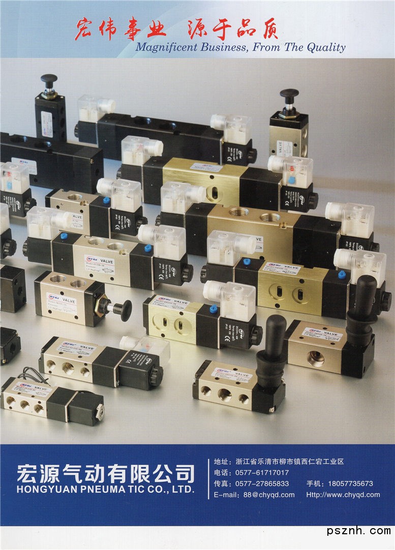 宏源氣動有限公司,專業生產電磁閥等其他各類氣動元件。產品具有如下特點:品種繁多、規格齊全、外型新穎、價格合理、質量可靠企業自成立以來,憑借雄厚的技術力量,高效率的生產管理,完善的銷售網絡,一流的售后服務,贏得了客戶的信賴。 本公司地處我國東南沿海經濟開放城市溫州,交通便捷,經濟技術信息領先,依托溫州開發區的優惠政策與全體員工的共同努力,企業蓬勃發展,已具有一定規模與實力,產品遠銷全國各地。 我們主要以“誠信、高效、求實、創新”為理念,以“專業品質、一流服務”為宗旨,堅持以市場為導向,不斷地為客戶提供各種氣動產品的生產方案。滿足降低成本及提高生產效率是我們不懈的追求!