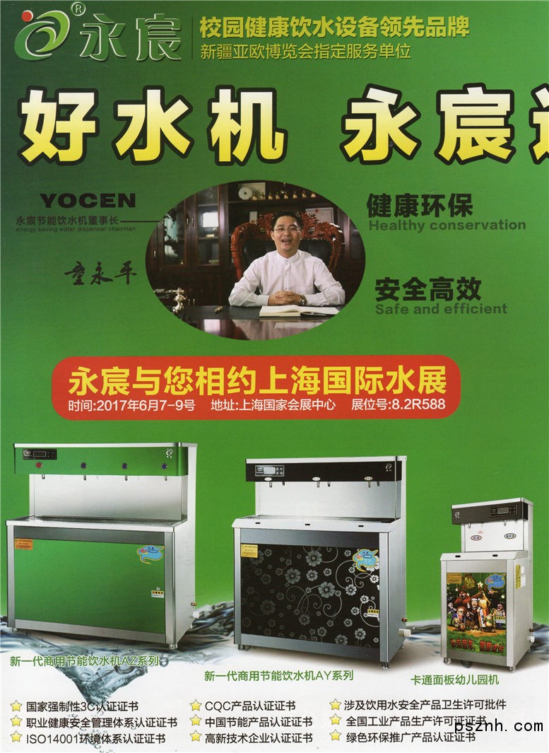 公司以“自主研發、締造品牌、順德驕傲、面向全國”的發展方向,本著“誠信、熱情、進取、和諧”的宗旨致力于生產各類節能飲水設備,以市場為導向公司獲得多項國家專利擁有自主知識產權。產品已形成十大系列五十多個規格:不銹鋼節能飲水機、校園直飲水機、步進式商務開水機、RO反滲透柜式飲水機、校園IC刷卡飲水機、冰熱型飲水機、溫熱型飲水機、幼兒園專用飲水臺、戶外直飲水臺、家庭辦公飲水機、凈水器等飲水設備,廣泛應用于學校、工廠、部隊、醫院、機場、車站、事業單位等公共場所。