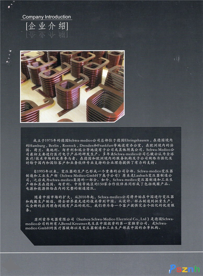 隨著中國市場的擴大,從2010年起,Schwa-Medico公司將開始在中國進行變壓器和線圈的生產制造,將世界最先進的技術帶到中國。