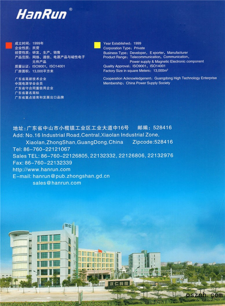中山市漢仁電子有限公司創建于199993日,公司自創業以來以技術為依托,市場為導向,秉持文明誠信、開拓創新的企業文化,堅持安全生產、創造價值、享受生活的品質方針,逐步發展為富有競爭力的集研發、生產、銷售于一體的高新技術企業。公司目前擁有自建的13000平方米新型生產廠房,通過ISO9001:2004國際質量體系認證和ISO14001:2008環境管理體系認證。漢仁主要生產和銷售各種優質的變壓器、RJ45連接器、語音分離器、濾波器、電感類磁性元件等產品。產品被廣泛應用于網絡、電信、計算機、航空航天和交通運輸、汽車、醫療設備等領域,為客戶提供專業及齊全的產品選擇。我們對客戶的承諾是提供高品質和高競爭力的產品,誠信是我們與客戶往來一貫秉持的方針。漢仁特別重視客戶、供應商之間的合作伙伴的關系,透過供需雙方的緊密配合及良性溝通建立起穩定并長期的合作關系。漢仁建立專業的研究開發中心,敏銳地了解市場和客戶的需要,通過與客戶緊密的研究開發活動,為客戶提供專業的產品解決方案。用創新提升效率,用科技創造價值,是漢仁人永恒的追求。