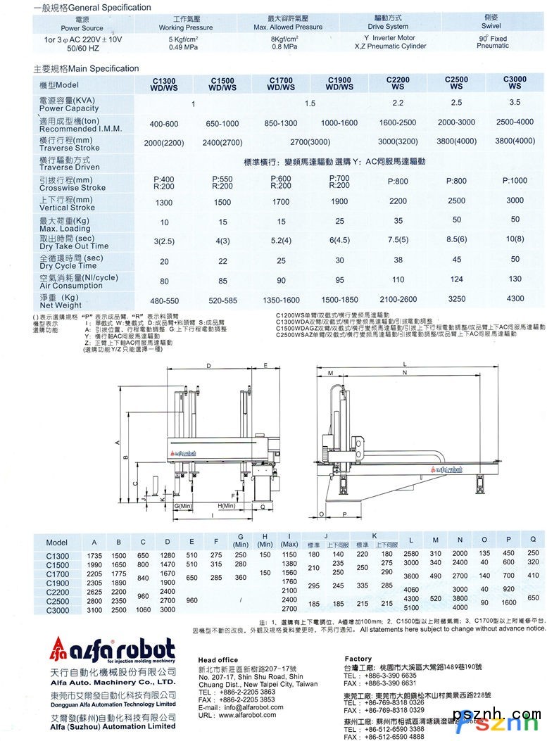 | 1988 | 創立于臺灣桃園,資本額988萬臺幣。以生產塑料射出成型機械手為主。 董事長 施復興先生 |