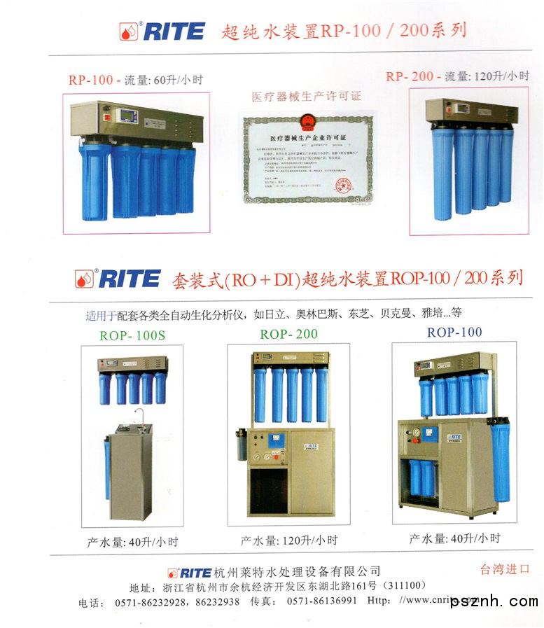 杭州萊特水處理設備有限公司 醫療刷手臺 血透用RO純水 實驗用超純水