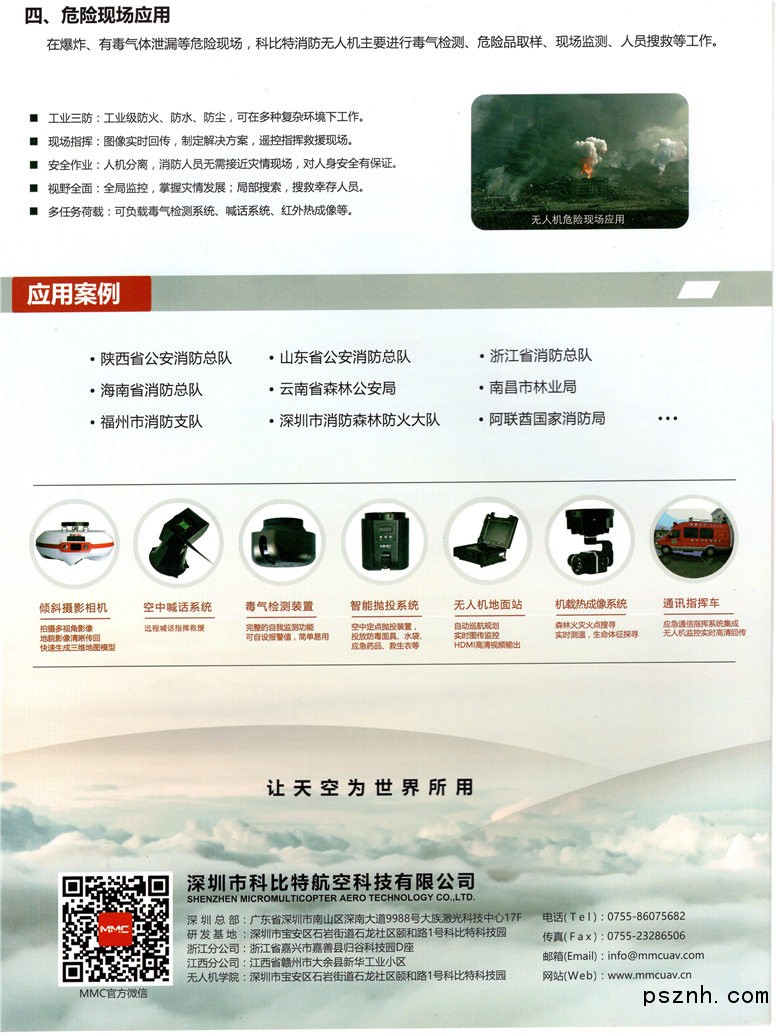 客戶廣泛分布在公安反恐、消防救援、能源巡檢、軍事用途、電力拉線、航空遙感、國土監察、城市規劃、森林防火、交通管理、空中偵察等多個行業。公司培養了一支從事無人機服務的專業團隊,提供巡檢服務、培訓服務、功能定制開發服務、系統解決方案開發等。