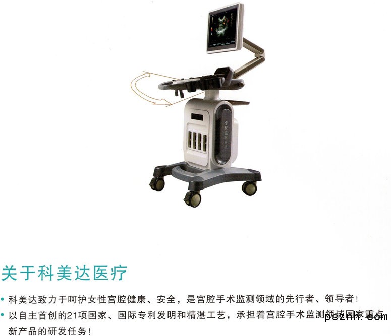 科美達公司積極投入醫用超聲技術的研發,開發出了具有自主知識產權的K系列彩色多普勒超聲產品,被廣泛應用在婦科,產科,泌尿科,也可以進行肝、膽、脾、腎、胰腺、甲狀腺、乳房、膀胱、子宮附件等臟器的有效診斷和手術過程監視。