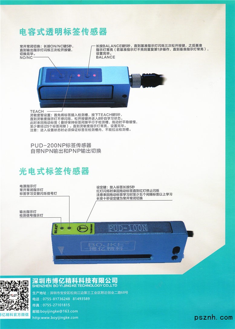 深圳市博億精科科技有限公司是集光纖傳感的研發(fā)、制作、銷售一體的公司,擁有完整、科學(xué)的質(zhì)量管理體系。本公司是專業(yè)研發(fā)和生產(chǎn)傳感類光纖、光纖放大器,光電開關(guān)、近接開關(guān),色標(biāo)放大器、色標(biāo)光電、激光光電、BGS背景抑制光電、環(huán)形計數(shù)接近、電容式液位傳感器、槽型/微型光電開關(guān)、廣泛應(yīng)用于鐵路、化工、機(jī)床、汽車、包裝、印刷、食品、木工業(yè)、紡織、電子、PCB電路板、以及自動化設(shè)計領(lǐng)域不可缺少的原件。可以完全替代國內(nèi)外知名品牌的傳感器。我公司所生產(chǎn)的近接開關(guān)有超短型、超小型、長距離型、直角90度型、耐腐蝕型、耐高壓型、耐高溫型、耐低溫型、防爆型、模擬量輸出型。