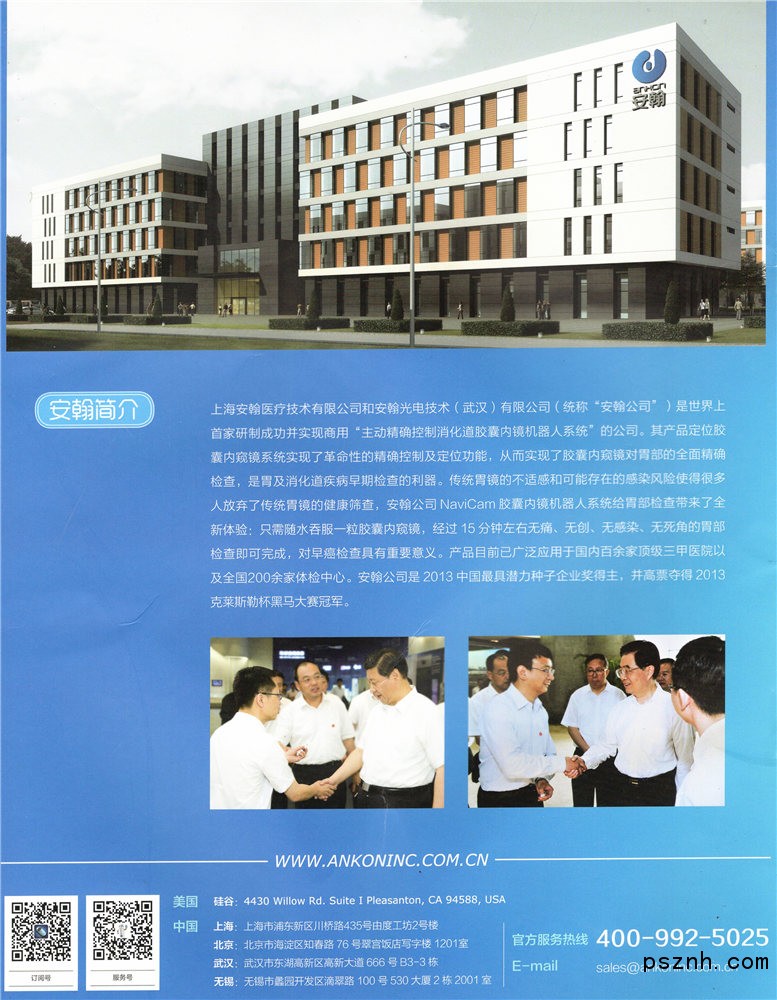 安翰光電技術(shù)(武漢)有限公司(以下稱“安翰光電”)是世界上第一家研制成功可主動精確控制消化道膠囊內(nèi)鏡機器人并于2013年1月實現(xiàn)商業(yè)化應用的中外合資高新技術(shù)企業(yè)。公司團隊由國內(nèi)極具高科技孵化經(jīng)驗的專家牽頭,集聚了首批中組部“千人計劃”特聘專家和多位留學硅谷杰出博士。