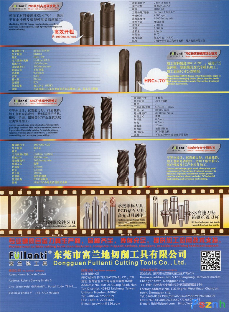 東莞富蘭地工具股份有限公司成立于2012年,是德國提供技術在大陸生產的合資企業,并已建立自己的品牌"Fullanti"從事各種碳化鎢鋼切削刀具,包括高硬度銑刀.不銹鋼銑刀.鋁合金專用銑刀.鎢鋼鉆頭,鎢鋼鉸刀,鉆石刀具和根據客戶的要求訂制非標的刀具。