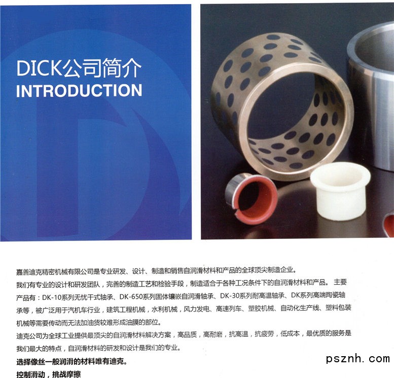 迪克公司為全球工業提供領先的自潤滑材料解決方案,高品質,高耐摩,抗高溫,抗疲勞,低成本,優質的服務是