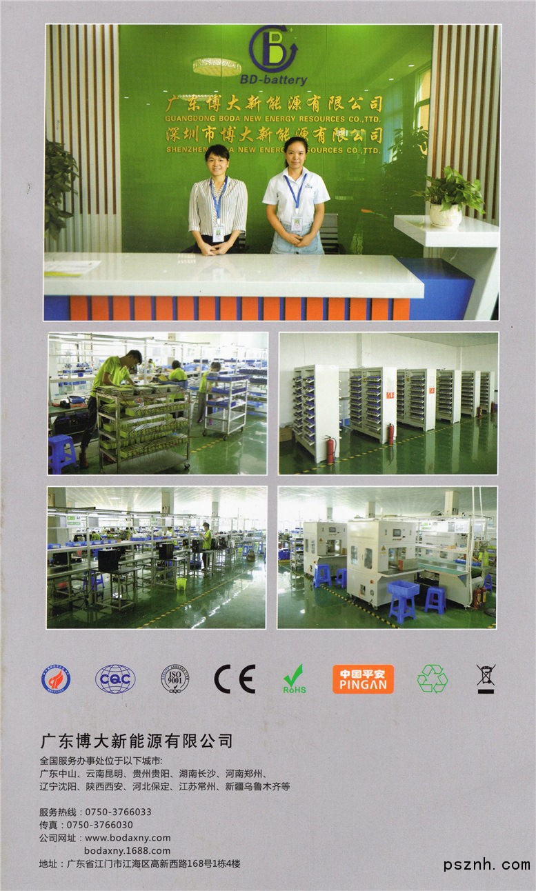 ————————平安保險公司承保的保值1000萬的產品責任險!這些都是規范的象征,品質的保障! 博大人,在快速成長的過程中,兢兢業業,始終堅守理念(“科技領先,誠信經營,嚴謹生產,品質卓越,服務至上”),公司目前擁有近20人的銷售團隊,相繼在全國設立九大辦事處(廣東中山,云南昆明,貴州貴陽,湖南長沙,河南鄭州,陜西西安,河北保定,江蘇常州以及新疆烏魯木齊)。憑借公司過硬的產品質量和團隊扎實的工作,贏得了廣大太陽能路燈終端客戶的廣泛的認可,形成了“博大”的品牌效應,很多初次合作的客戶都是慕名前來的;品牌,是一種榮耀,也是一種責任,博大人,勇于擔當! 新能源事業的征程,任重而道遠,博大鋰電池,定會越做越優,博大人,定會越戰越勇!博大太陽能路燈,照亮您回家的路! 廣東博大新能源有限公司是一家以鋰離子電池(磷酸鐵鋰材料體系,三元材料體系)為載體的,專業從事新能源儲能系統(以太陽能路燈為主)的研發、生產、銷售為一體的綜合性科技型公司。