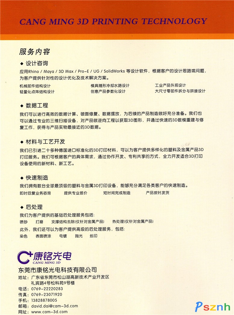 東莞市康銘光電科技有限公司是一家專業提供工業級3D打印應用解決方案及新產品快速開發整體解決方案的高科技企業。公司自成立,專注于國內快速成型、快速制造裝備市場,并迅速成長為該行業的一匹黑馬。作為專業的3D打印技術應用解決方案提供商,我們長期致力于工業級3D打印技術在每個行業的創新應用和開發,客戶只需提出一個想法或創意,我們即可提供基于3D打印技術從設計、數據、制造、后處理直至最終產品交付的一站式解決方案,幫助客戶最大程度的節約時間與成本.