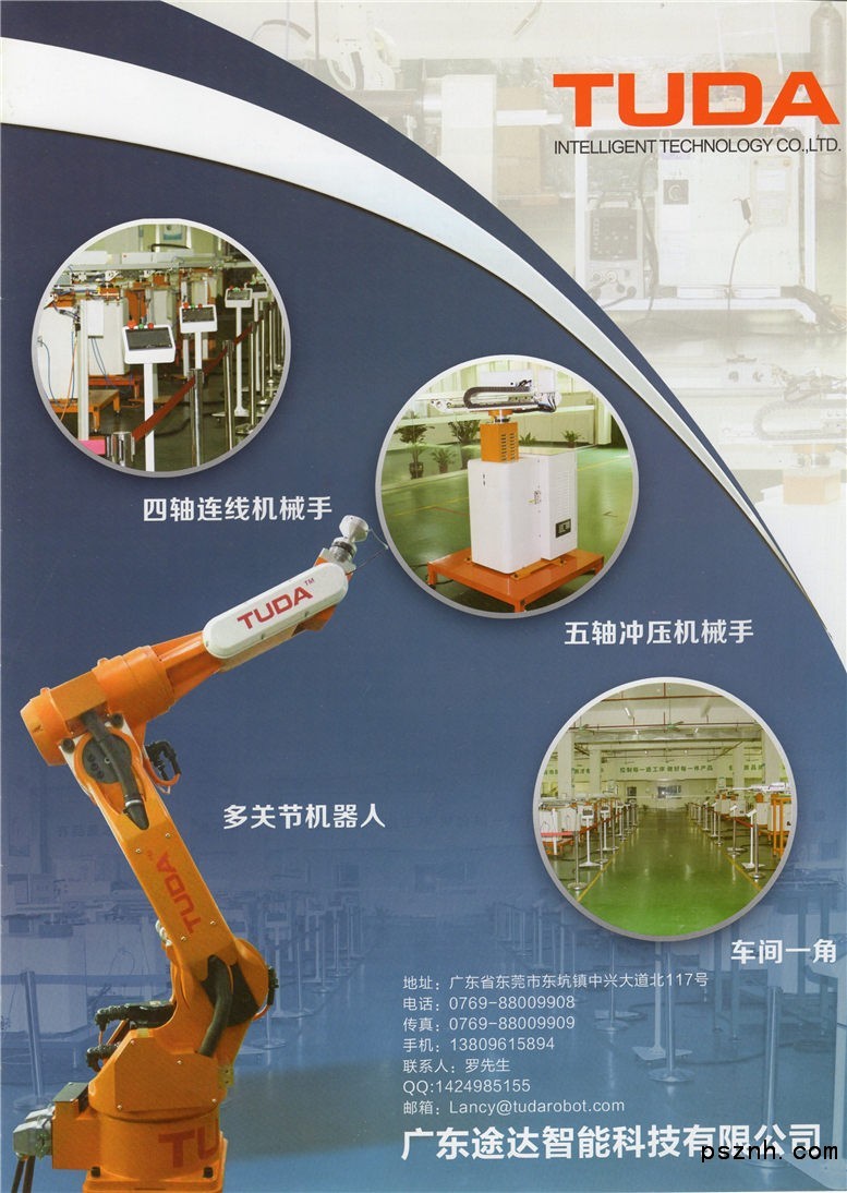 廣東途達智能科技有限公司成立多年以來,已經成為一家掌握核心技術,集研發、生產、銷售、服務于一體的國家重點高新技術民營企業,注冊資金為人民幣1億元,可年產六軸機器人、沖壓機械手等自動化設備5000-10000臺以上,有專業碩士、博士等高級工程師數十人,總部位于東莞市東坑鎮中心,占地面積2萬平方米。目前部署及正在規劃的辦事處及常駐人員廣泛分布于上海、佛山、重慶、江門、南寧、杭州、蘇州、長春、沈陽、福州、海口、柳州、淄博、贛州等全國各地。