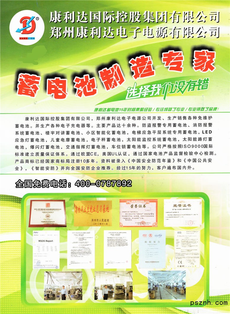 免維護(hù)蓄電池——由鄭州康利達(dá)電子電源有限公司開發(fā)、生產(chǎn)銷售。并生產(chǎn)各種、電子充電器等。KLD系列產(chǎn)品包括2V,4V、6V和12V四大系列,容量從0.8AH至250AH。質(zhì)量穩(wěn)定,性能可靠!所有產(chǎn)品都已經(jīng)通過CE和UL認(rèn)證。主要產(chǎn)品達(dá)十余種。免維護(hù)蓄電池廣泛用于防盜、消防報(bào)警系統(tǒng)、樓宇對(duì)講、小區(qū)智能化,考勤機(jī),電梯應(yīng)急疏散系統(tǒng),應(yīng)急燈,兒童電摩,人體秤,電子秤,車位鎖,爆閃燈,太陽(yáng)能等備電。公司嚴(yán)格按照ISO9000國(guó)際標(biāo)準(zhǔn)建立質(zhì)量保證體系。產(chǎn)品商標(biāo)已經(jīng)國(guó)家商標(biāo)局注冊(cè),并出口歐洲,美洲等地區(qū)。成為行業(yè)內(nèi)的名牌產(chǎn)品,產(chǎn)品資料被錄入《中國(guó)公共安全》《智能安防》有常年宣傳,并向全國(guó)安防企業(yè)推薦。鄭州市政府授牌:高校畢業(yè)生就業(yè)見習(xí)基地。 歡迎國(guó)內(nèi)外客戶,專家及各界朋友蒞臨指導(dǎo),洽談?dòng)嗀洝?/div>